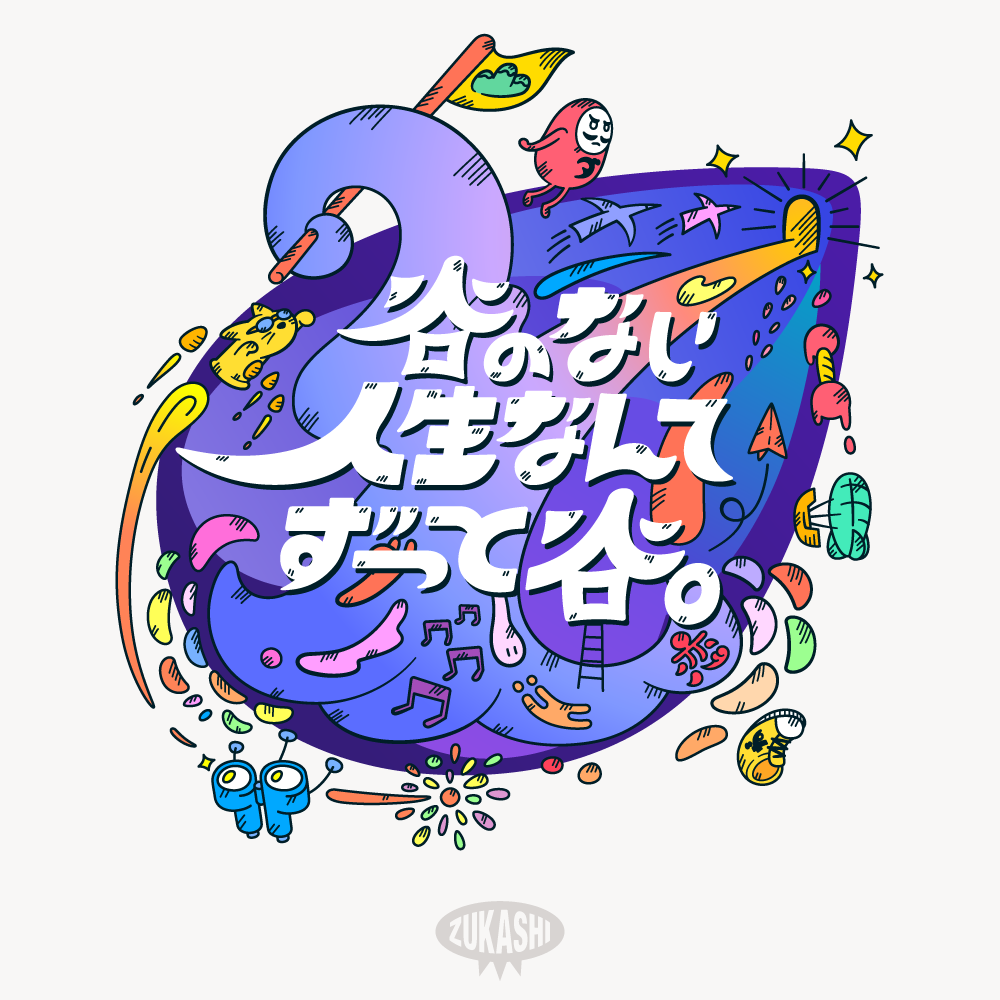 【文字アートデザイン】#4「谷のない人生なんてずっと谷」で描くタイポグラフィ|アート配信【よなかのず】#タイポグラフィ #文字アート #手描き文字 #illustration #ずかしのず