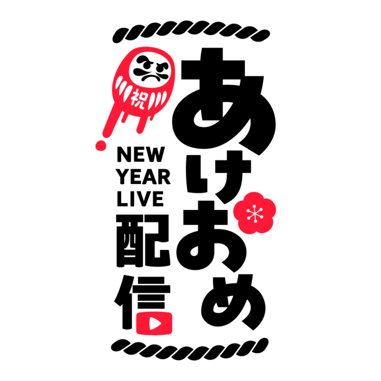 だるまの縦書きあけおめ配信ロゴ【フリー素材・サムネ素材】